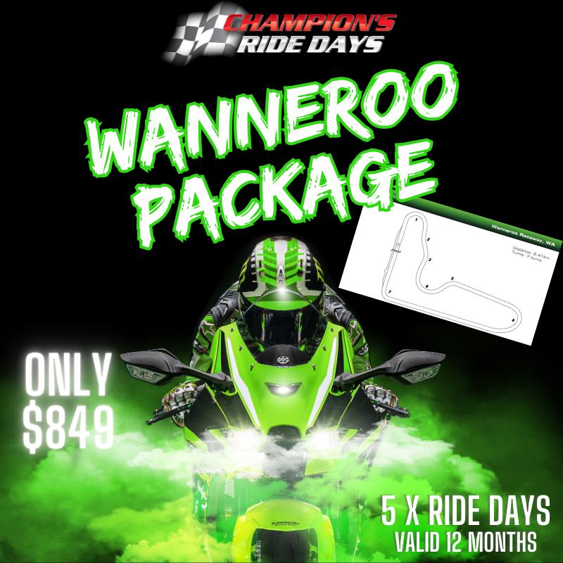 - 5 ride days at WANNEROO & Collie Motorplex with Champion’s Ride Days